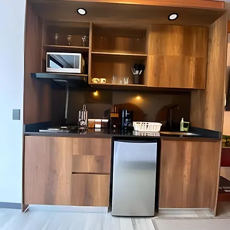 L'angolo cottura ha un frigo e utensili da cucina per la vostra comodità. L'Epic Suites X Ahead si trova a breve distanza dalla stazione degli autobus El Viajero.